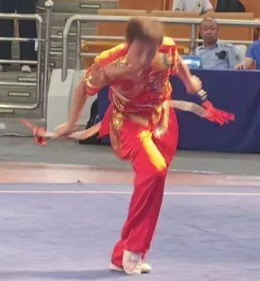 绳镖属于中华武术软兵器中的索系兵器,也叫做软枪,最大的特点就是能屈能伸,收放自如。比赛现场上,随着陈奂廷娴熟的动作,镖头划破空气,发出“噗噗”的声音,绳子时而笔直如枪,时而又柔软缠于腰间,搭在肩头。镖头快如闪电,呼呼生风,招式变幻莫测,动人心魄。绳镖作为中国传统武术器械之一,技法讲究缠、绕、抛、击,需要练习者具备良好的协调性和控制力。陈奂廷的绳镖学习始于浙江省非物质文化遗产水火流星传承人王耀国老师的启蒙,进入浙江大学后,他在徐曼老师的悉心指导下继续精进。比赛中,他的动作干净利落,绳镖走势流畅,尤其在几个关键动作上完成较为稳定,展现了扎实的基础。